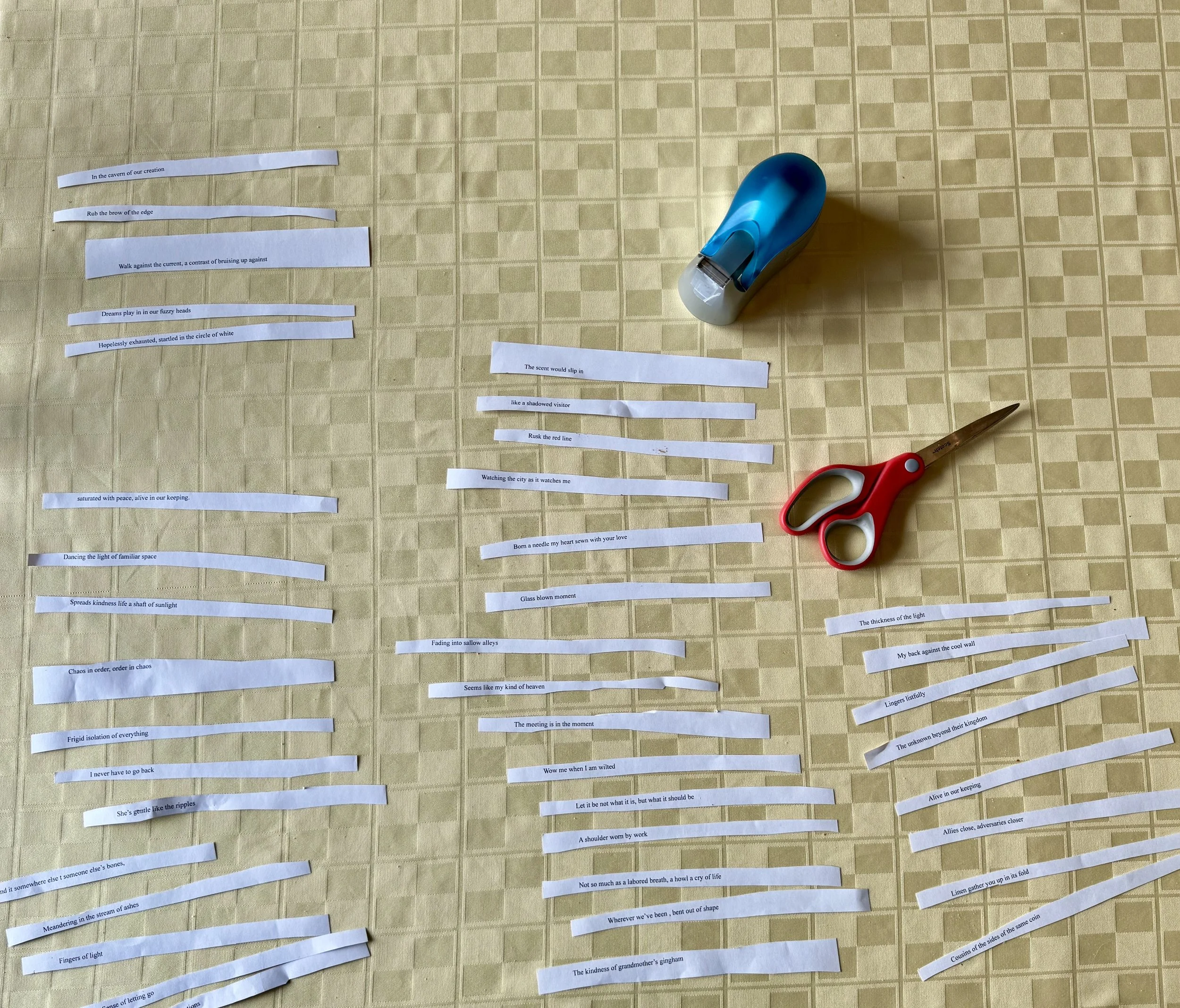 From this summer’s-fall’s Art SPeaks I jotted random lines down that others shared from their free wirtes. I created a Cento to share on Sunday at the Art SPeaks Reading. It was FUN to do. I edited and changed some of the words to fit (revised pronouns, singulars and plurals)